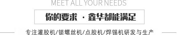 鑫華首頁  |  灌膠機系列  |  鎖螺絲機系列  |  點膠機系列  |  鑫華產(chǎn)品中心  |  視頻中心  |  新聞資訊  |  關(guān)于鑫華  |  聯(lián)系鑫華